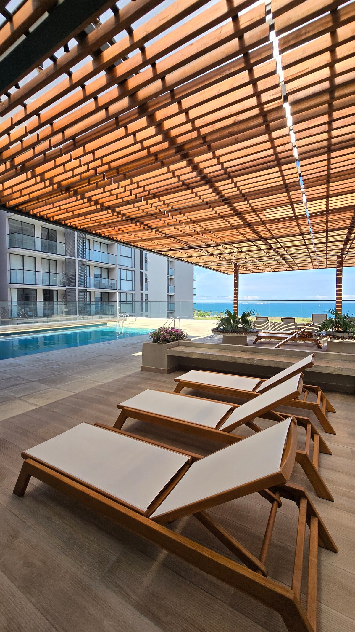 Отдохните в эксклюзивной и современной квартире в Посос-Колорадос, идеально подходящей для семейного отдыха. В вашем распоряжении зоны общего пользования с бассейнами, тренажерный зал, джакузи, сауна, турецкая баня, спа, игровая комната и многое другое. Вид на океан без прямых солнечных лучей для свежести. Кондиционер, Wi-Fi и все удобства. В нескольких шагах от пляжа, ресторанов, магазинов и транспорта. ¡Ваше идеальное место перед морем! *Важно упомянуть, что при входе в здание нужно заплатить 50 000 долларов с человека*