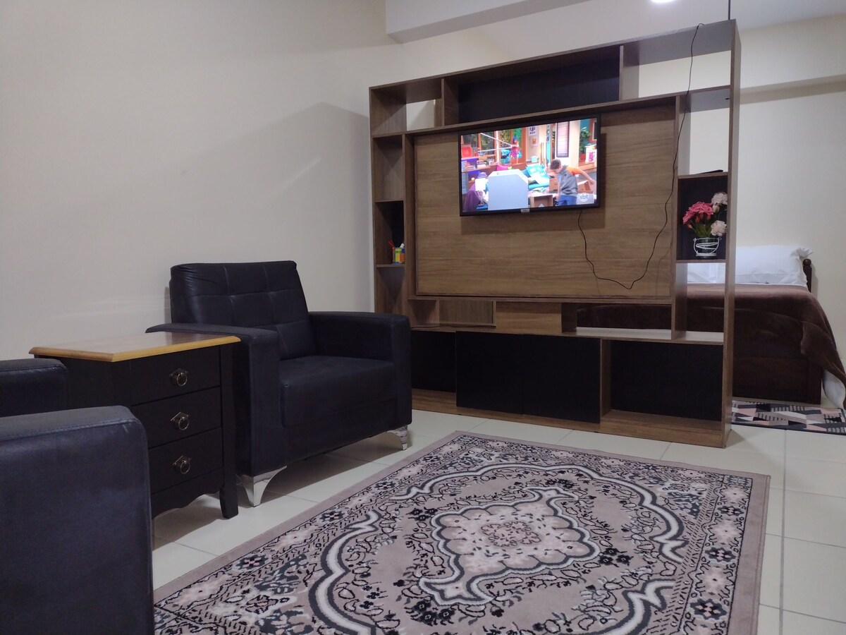 Лофт с полной инфраструктурой, комфортабельное место, новая мебель, кондиционер, электрические жалюзи, постельное белье, крытый и безопасный гараж, стиральная машина и сушилка, горячие краны, Wi-Fi и близко к центру города и удобствам. В кондоминиуме есть зона отдыха на 7-м этаже с прекрасным видом на город. На первом этаже гаража есть рынок с отличными товарами по супер доступной цене. Европейский стандарт в городе!