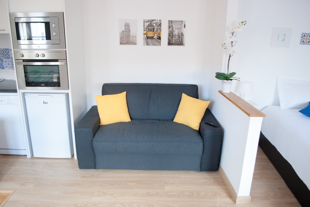 Высоко центральная студия, полная естественного света, с видом на замок. Расположена на 5 этаже старого исторического здания, без лифта. Студия с прекрасным видом на замок, гостиной, полностью оборудованной мини-кухней, двуспальной кроватью размера Queen size и ванной комнатой. Добро пожаловать в центр Лиссабона! В Байше/Россио на одной из самых знаменитых пешеходных улиц исторического центра. До всех обязательных достопримечательностей можно дойти пешком, хотя метро, трамвай, автобусы, поезда находятся у вашей двери. Bem-vindos!
