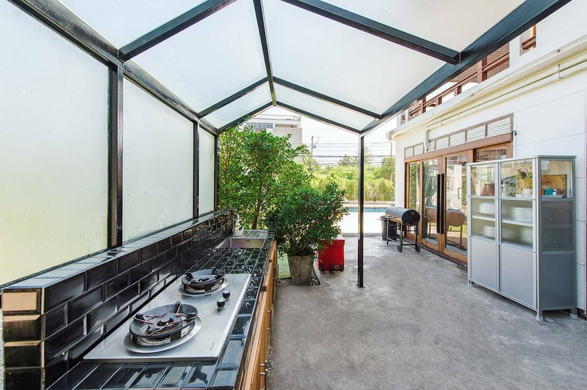 Эта отдельная вилла расположена в Soi 19, Sam Roi Yot, в 5 минутах ходьбы от пляжа. К услугам гостей терраса на крыше, сады и открытый бассейн. В бассейне есть специальная детская зона и водная горка. К услугам гостей принадлежности для барбекю как на террасе на крыше, так и на первом этаже. В распоряжении гостей обеденная зона и полностью оборудованная кухня. Полотенца и постельное белье предоставляются. Завтрак предоставляется по запросу. Этот район популярен для гольфа, пеших походов и езды на велосипеде.