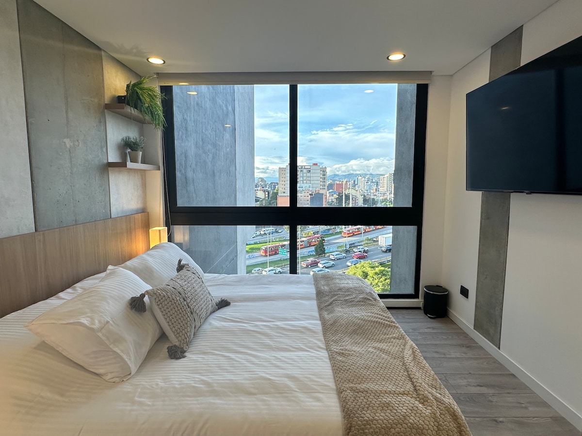 Современная и комфортабельная квартира с террасой на крыше, с которой открывается панорамный вид на город. Идеально подходит для пар, семей, любителей концертов, еды, культуры, спорта, командировочных и студентов. Расположен в Николасе де Федермане, одном из самых безопасных и лучших районов Боготы. Всего в нескольких шагах от стадиона «Эль Кампин», арены Movistar, парка Симона Боливара, Национального университета. Удобно расположен недалеко от аэропорта, посольства США, Сона-Роса, торговых центров и арены Vive Claro.