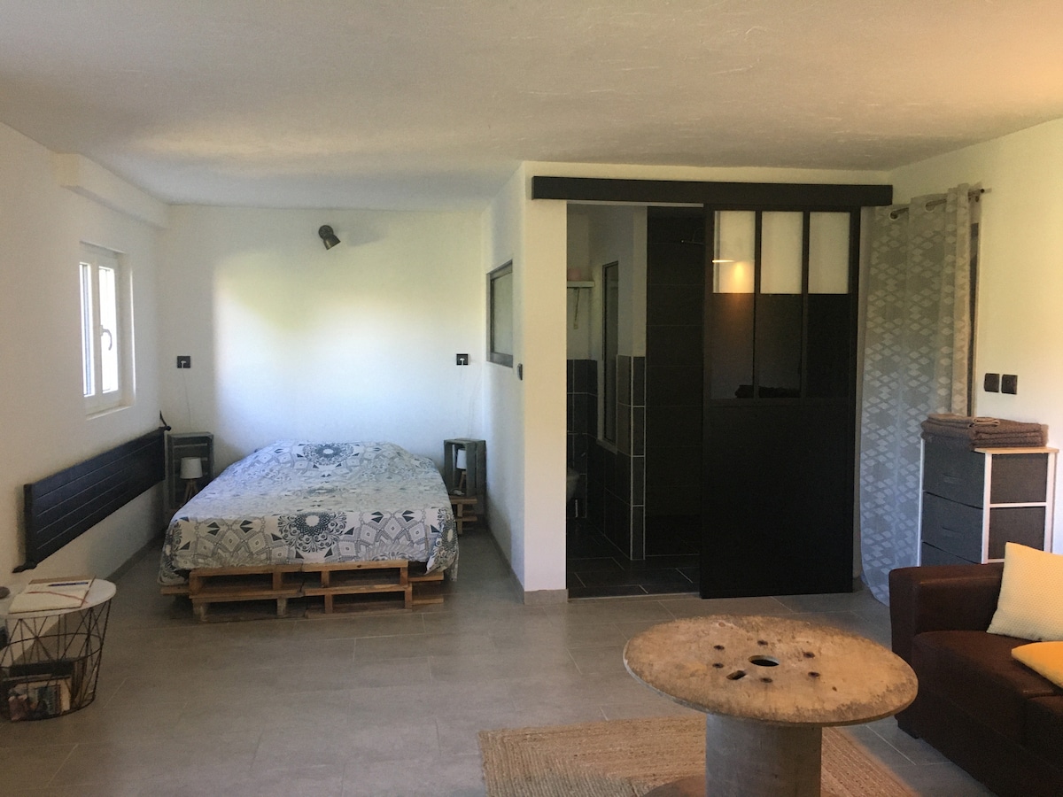 Petit gite cosy au rdc de notre habitation principale, avec entrée indépendante, petit jardin privatif et bassin où nagent paisiblement nos poissons asiatiques. Ce studio de 22m2 se compose d'une baie vitrée donnant accès à la cuisine avec tout le nécessaire, d'une salle d'eau avec wc, douche et lavabo, ainsi que d'un espace chambre/salon . Idéalement situé pour découvrir tous les attraits touristiques de l'Ardèche. Habitants sur place nous aimons accueillir nous-mêmes nos voyageurs.
