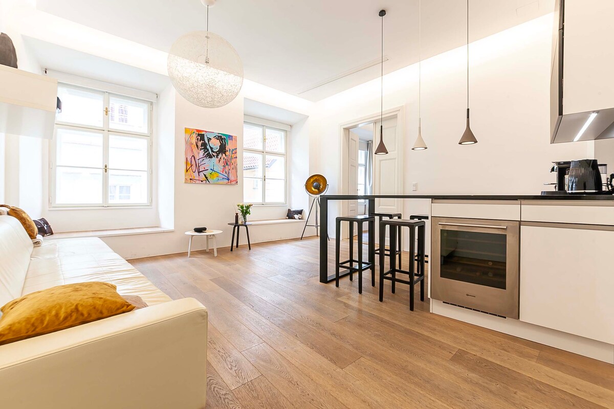 Красиво реконструированная квартира с двумя спальнями в здании XVI века находится всего в нескольких минутах ходьбы от самых интересных мест Праги, включая замок и Карлов мост. Хвастое, газовое освещение, извилистые улочки очаруют вас. Глубокие окна, толстые стены создают древнюю романтику этой квартиры. Потрясающий вид на Карлов мост из спальни и замок из гостиной оставит свой след после вашего отъезда.