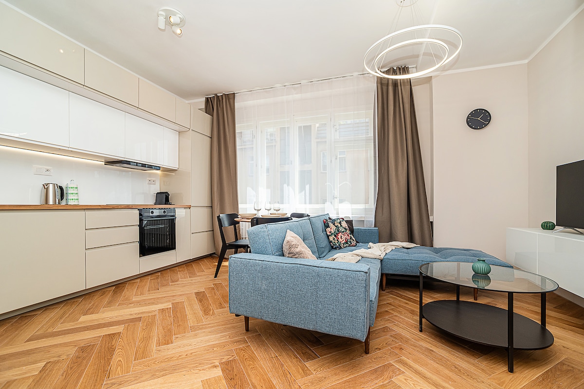 Остановитесь в стиле в нашей шикарной студии Karlin! После дня знакомства с городом расслабьтесь на нашем тихом балконе с напитком в руке. Студия идеально оборудована для комфортного проживания - от полностью укомплектованной кухни до высокоскоростного интернета для работы или развлечений, и даже стиральная машина-сушилка для путешествий без проблем. А вишня наверху? Мы предлагаем парковку прямо в гараже здания, так что не беспокойтесь о поиске места. Приезжайте и познакомьтесь с аутентичной Прагой, живущей в центре Карлина!