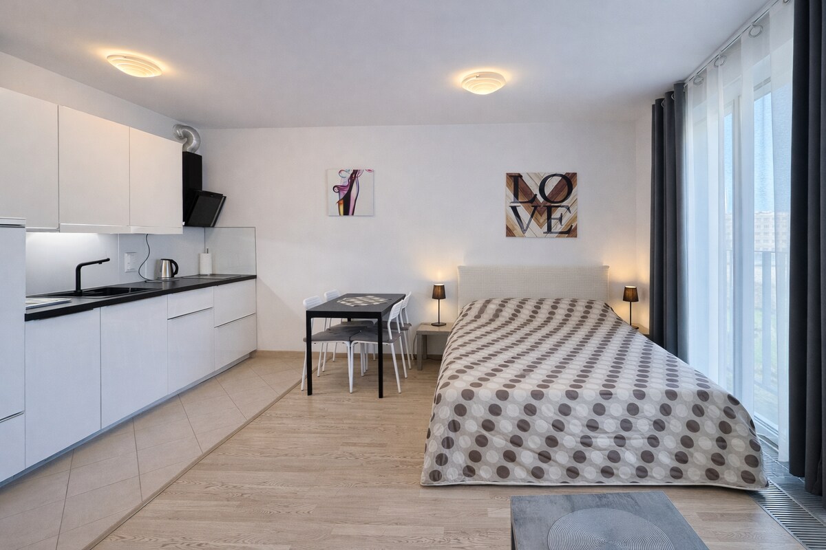 Современная комфортабельная квартира расположена в Праге 3, в Новостройке, рядом трамвайная остановка Olšanská. Поездка до центра города занимает всего 10 минут. Рядом вы найдете торговый центр, парки, рестораны, теннисный корт. Отличное место для отдыха. Приветствую пары, одиноких путешественников, семьи или бизнесменов. В квартире вы найдете почти все, что вам нужно для комфортного проживания, отличная кухня.