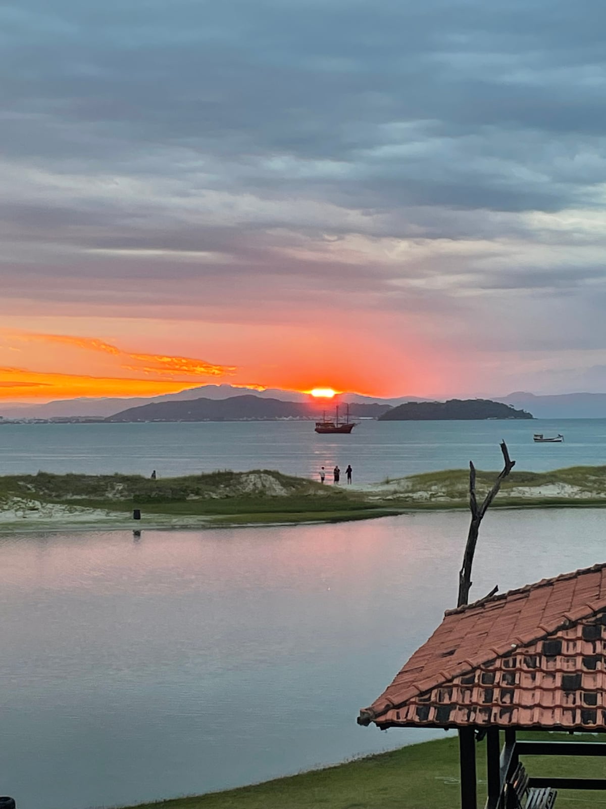 Casinha estilo rústico em frente a praia de Ponta das Canas na parte mais isolada. Mesmo com lotação máxima na ilha aqui é um cantinho reservado. Para chegar a praia em frente é possivel de duas formas pela rua (300m) ou pela lagoa (água salgada), quando está baixa molhando apenas até o joelho com uma paisagem incrível, cheia de gaivotas. Ideal para quem curte a natureza. Janela do quarto com linda vista para lagoa e mar. Aqui você pode também desfrutar o jardim fazer churrasco.
