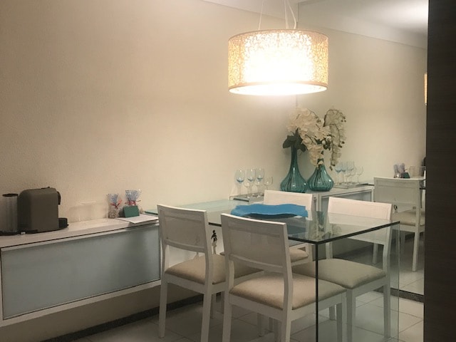 Квартира расположена в стратегическом районе города, недалеко от автобусной станции, супермаркетов, торговых центров, конференц-центра и пляжей. Безопасный, хорошо освещенный и урбанизированный жилой район с другими соседними кондоминиумами. Гастрономический район в нескольких метрах. Автобусная остановка у двери.