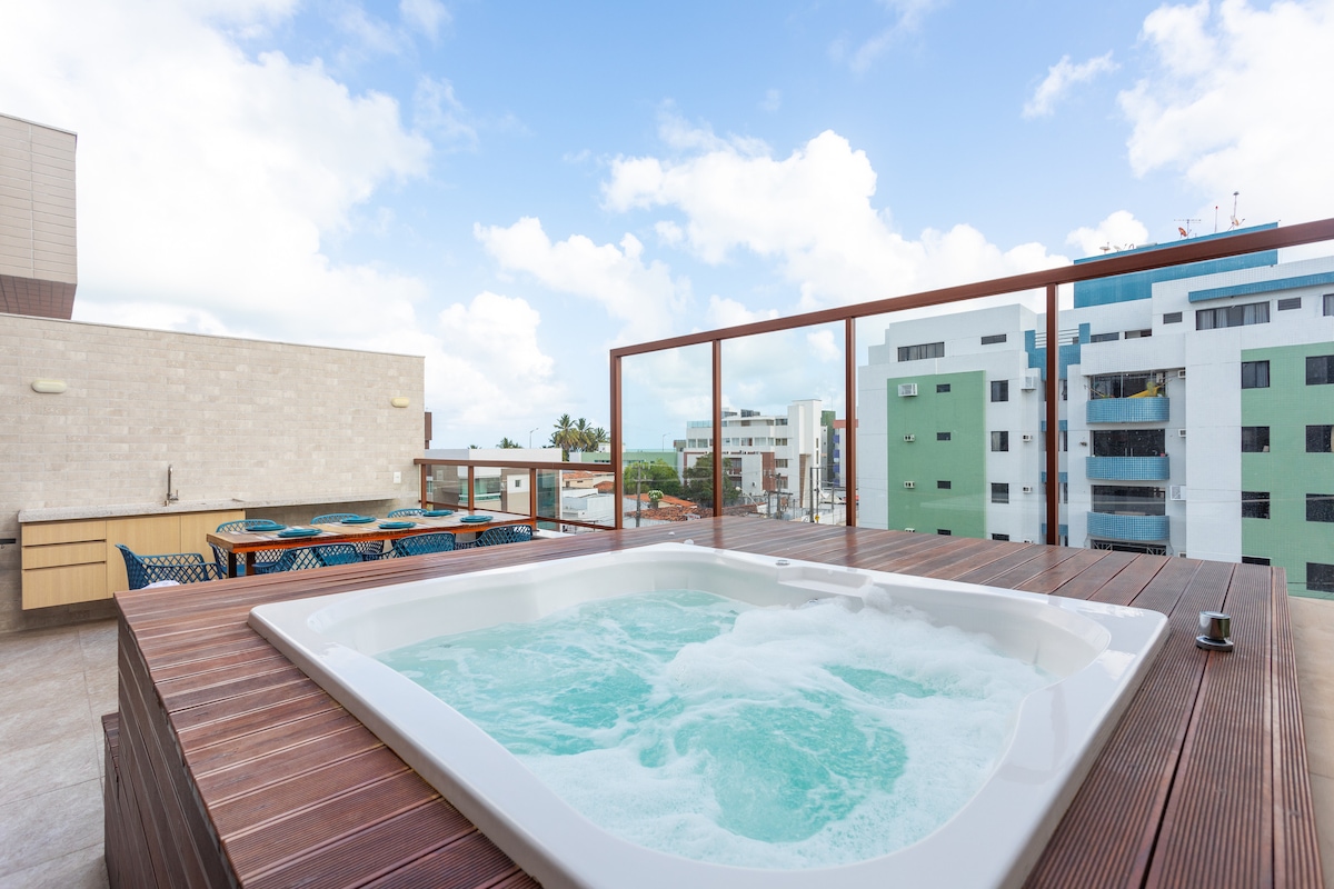 Cobertura com Jacuzzi a 130 m da praia de Tambaú