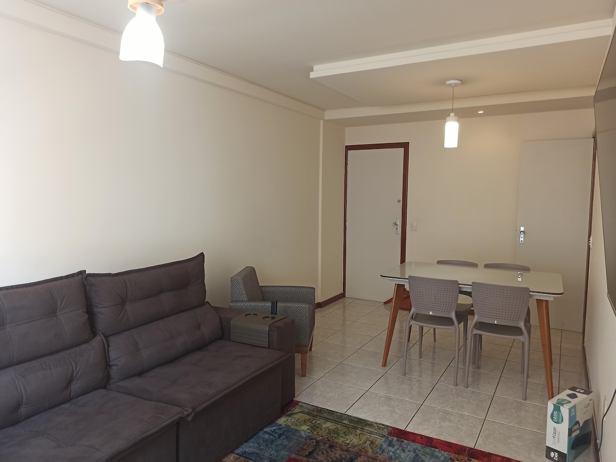 Эта очаровательная и недавно отремонтированная квартира с 3 спальнями и 2 ванными комнатами - лучшее место в Витории, чтобы разместить вас и вашу семью. Квартира может с комфортом разместить до 7 человек и всего в 200 метрах от красивого песчаного пляжа. Вдоль «Калькадао» есть множество достопримечательностей, и главная улица закрыта каждое воскресное утро для встреч семьи и друзей. Ожидается, что вы увидите, как многие люди ходят или катаются на велосипедах, скейтах и скутерах.