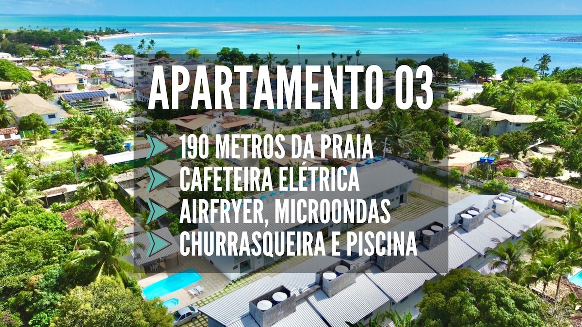 Рядом с пляжем (800 метров), рядом торговый центр (300 метров) и всего в 450 метрах от местной ярмарки. - Квартира с кондиционером и кондиционером. - Постельное белье, подушки и полотенца; - SmartTV. - встроенная кухня с плитой/духовкой, микроволновой печью и холодильником; - Кухонная утварь; - 01 парковочное место; - WIFI 200 MEGAS CABRÁLIA NET Приезжайте и откройте для себя красивейшие пляжи региона. Тихий и безопасный кондоминиум. Отличное место, чтобы отдохнуть с семьей.