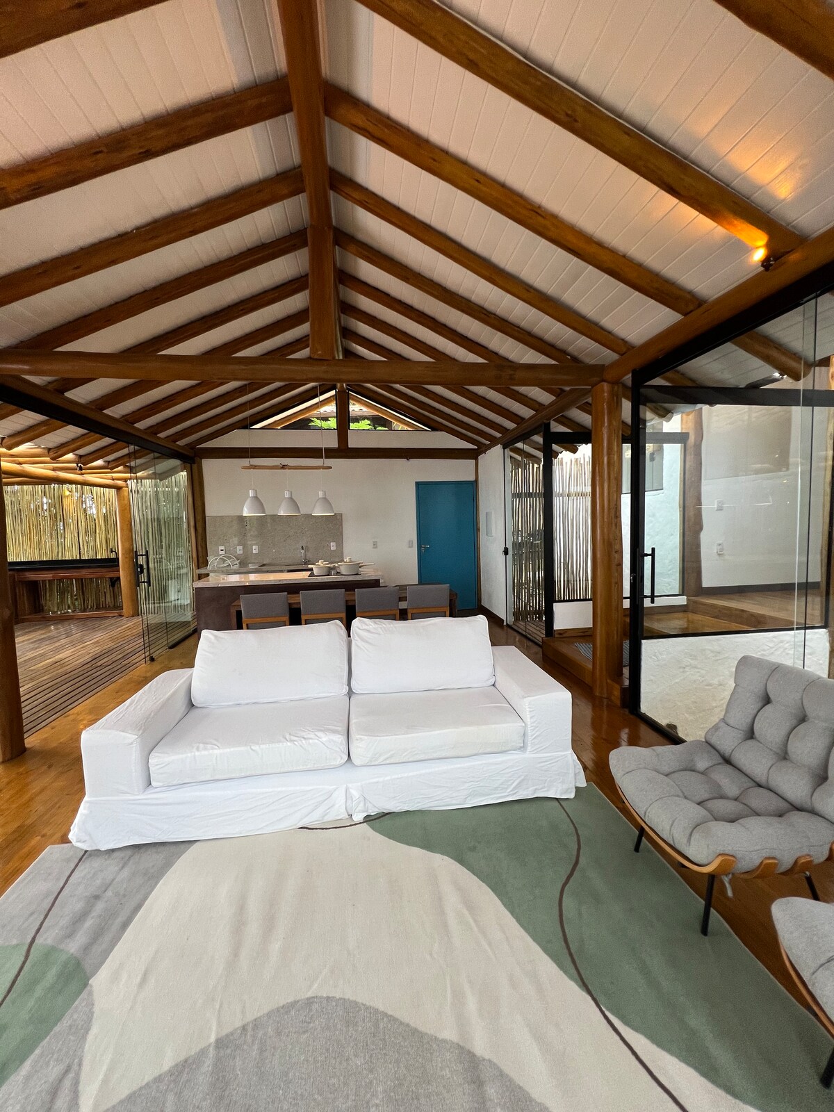 Уединение, комфорт и тишина рядом с природой. Роскошь в простоте, в деталях японской архитектуры, с очарованием южной части Баии. Дом с теплом декора, созданным вашей хозяйкой, чтобы поприветствовать вашу семью, друзей, а теперь и наших гостей Мы делимся с вами тем, что мы хотим для нас: место, где можно отдохнуть и воссоединиться с семьей, друзьями, с природой и собой.
