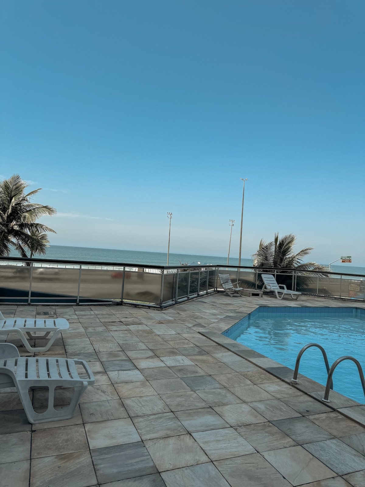 Квартира на берегу моря, фантастический вид на Педру и Прайя-ду-Понтал. Подходит для 4 человек (идеально для 2 человек), 1 кровать размера Queen size и 2 коврика на полу, кондиционер только в спальне, 1 ванная комната, гостиная с диваном-кроватью, телевизор, вентилятор, сетка, большой балкон. В оборудованном кондоминиуме с бассейнами, сауной, джакузи, тренажерным залом, рестораном, выходом на набережную пляжа и 1 парковочным местом. Рядом торговля и пляжи Барра, Рекрео, Макумба, Прайндха, Грумари. Примечание: жилье не отремонтировано, мебель не новая!