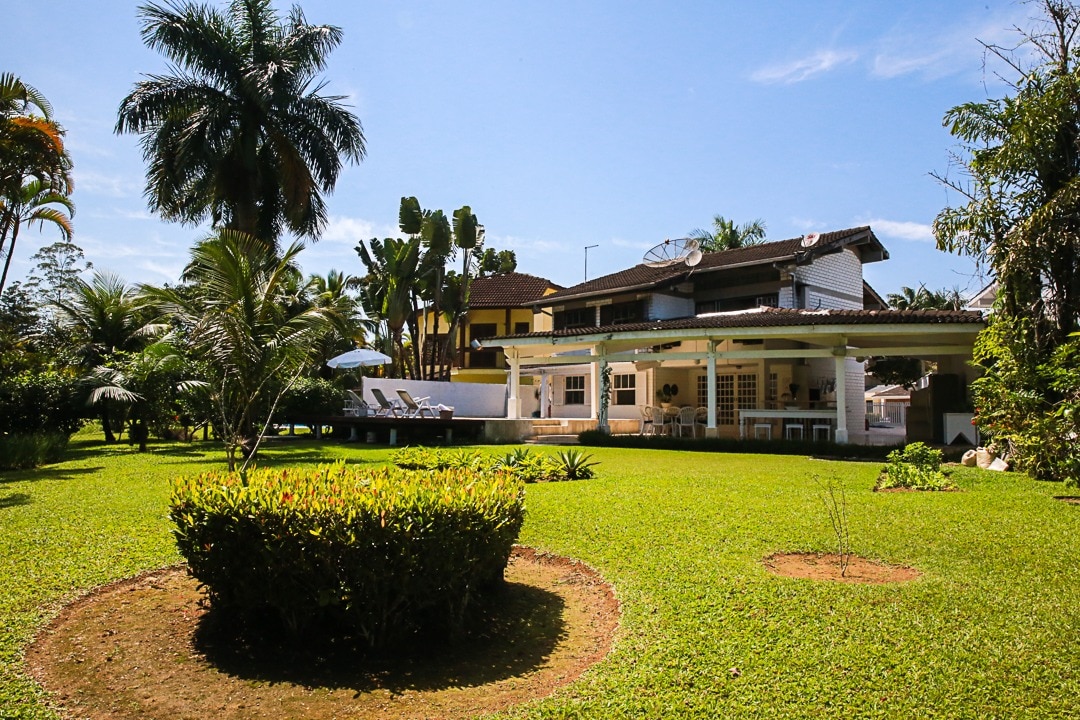 Прозрачный и просторный, в открытой концепции, дом имеет 6 спален, 2 люкса. Есть 3 комнаты, 4 ванные комнаты, запланированная американская кухня, пространство для гурманов с 130 м2, сад с 1000 м2, бассейн, барбекю, дровяная печь для пиццы и большие балконы. Потолочные вентиляторы во всех номерах, кондиционер в 6 спальнях. Доступ в Интернет, беспроводной Wi-Fi на всей территории отеля. Costa Verde Tabatinga Condominium, лучший закрытый кондоминиум на северном побережье, SP.