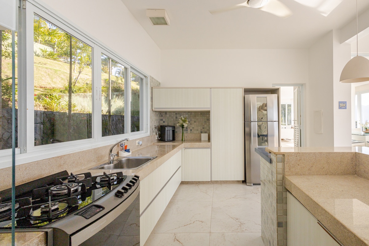 Добро пожаловать на северное побережье Сан-Паулу! Мы предлагаем полный комфорт, стиль и связь с природой — и все это с морем у ваших ног. Менее чем в минуте ходьбы вы окажетесь на пляже. 📍 Расположение: в нескольких минутах ходьбы от очаровательной Голубой лагуны и всего в 5 минутах езды от супермаркета, аптеки и магазинов. Мы находимся в 20 минутах от центра Карагуататубы и примерно в часе езды от Илья-Бела и Сан-Себастьяна.