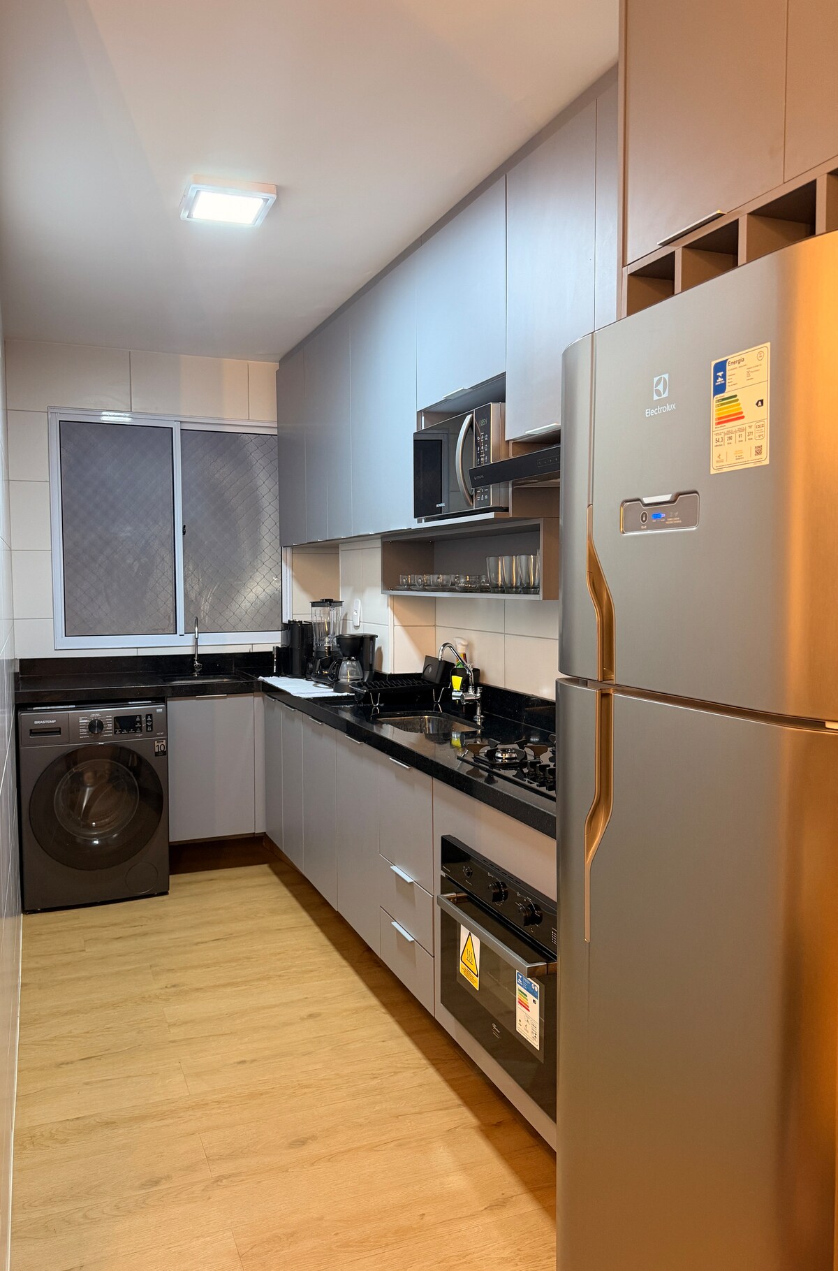 Квартира в Tropical Executive Hotel красиво оформлена и имеет великолепный вид на реку. Номер с кондиционером, кроватью размера Queen size Ortobom, 1000 проводов, 45-дюймовым телевизором, Wi-Fi, 2-местным обеденным столом и диваном. Хорошо оборудованная кухня с 2-конфорочной варочной панелью, скруббером, очистителем воды, кофемашиной Dulce Gusto + капсулы, сковородами, блендером, холодильником, посудой, кухонной утварью и микроволновой печью.