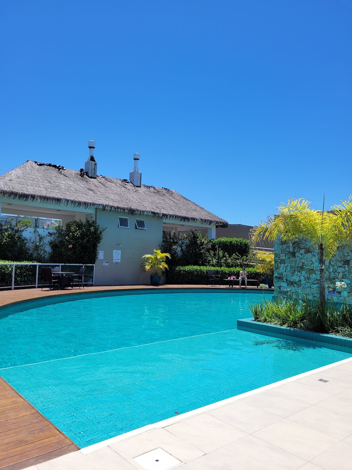 condomínio de frente para o mar, com piscina.