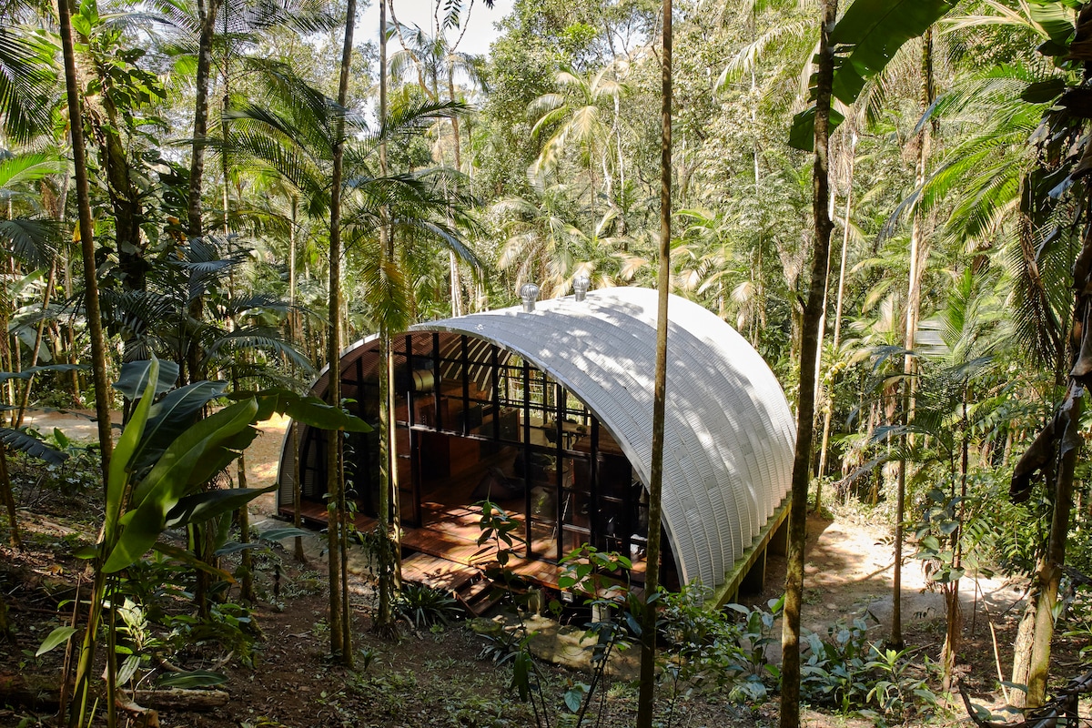 Этот совершенно новый дом расположен высоко над деревьями в эко-деревне Aldeia Rizoma, закрытой собственности в 15 минутах от исторического центра города. К услугам гостей тренажерный зал в джунглях, сауна (оплачивается дополнительно), частные тропы и доступ к 5 частным водопадам. В студии с одной спальней есть кровать «king-size», построенная высоко, так что вы можете наблюдать за лесом. К услугам гостей отдельная гидромассажная ванна и полностью оборудованная кухня. Есть дополнительная кровать, которую можно использовать для третьего человека за дополнительную плату за ночь.