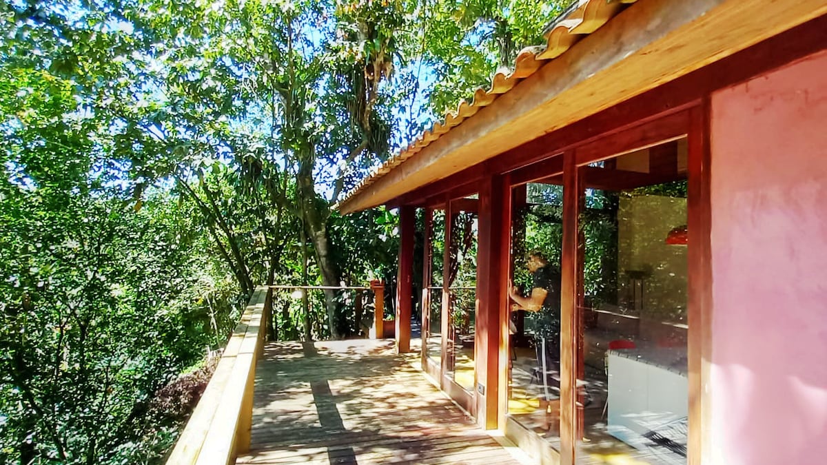 Совершенно новый дом в тихом, райском месте с полной уединенностью, вставленный в лесу рядом с парком Бокаина в Парати: + Панорамный вид на долину и лес. + 2 уютных номера (люксы) для 4 гостей. + Панорамный бассейн с подогревом. + 100 Мбит/с высокоскоростной интернет + Кондиционер с горячей и холодной водой + Отдельные водопады и полностью оборудованная кухня. + Зона для гурманов с барбекю и дровяной духовкой. + 100% асфальтированный доступ, в 10 км от центра Парати.