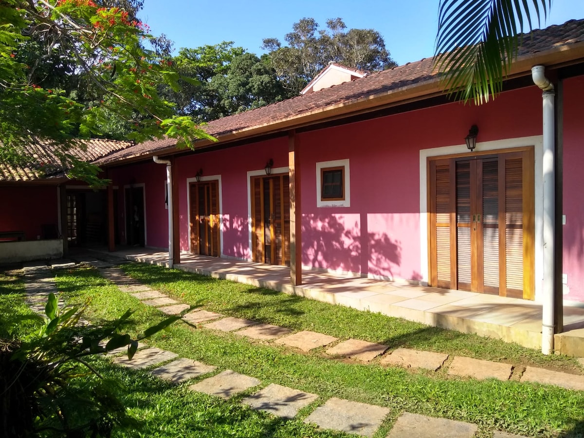 Отличный одноэтажный дом для всей семьи, менее чем в 1 минуте от пляжа Форталеза в Убатубе! - Полный питомник. - 3 люкса (ванная с туалетом) и 1 спальня. — Столовая и телевизор. (Телевизор не имеет открытого телевидения, только через Интернет) - Варанда с сетью. - Барбекю-зона. - Wi-Fi. — Парковка на 4 машины. — Мы принимаем только маленьких и средних домашних животных (за дополнительную плату). Больше фото и видео вы найдете в Instagram: @ubahaus.