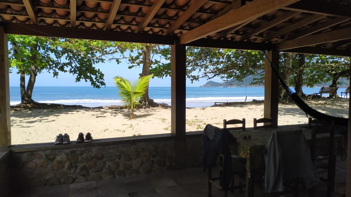 Шале на Praia do Sleep Paraty Rj, с видом на море, шале - спальня с двуспальной кроватью, постельным и банным бельем и вентилятором, кухня с плитой холодильника, кастрюлями, стаканами и столовыми приборами. Ванная комната с горячим душем, балкон с гамаком и пляжным стулом. Чтобы добраться до шале, он освещается только лодкой или тропой. Тропа длится 1 час, лодка отправляется с 8:00 до 17:30.