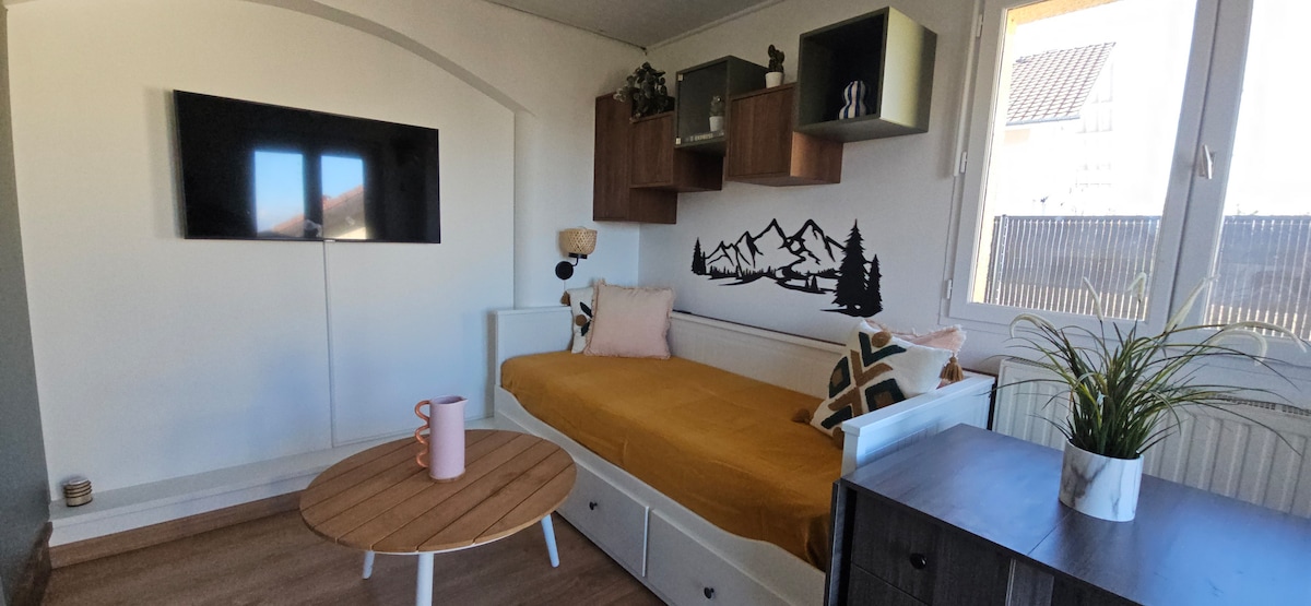 Bienvenue dans ce cocon paisible niché entre Genève et Annecy, où la nature vous entoure.✨ Ce petit nid douillet au calme est unique et allie le charme de l'authenticité à un confort moderne. Situé le long du célèbre Chemin de Saint-Jacques-de-Compostelle et niché dans une bâtisse au charme intemporel, cet espace offre une retraite bienvenue aux pèlerins fatigués ou aux voyageurs en quête de quiétude.🌳 Emplacement idéal entre Genève & Annecy pour découvrir toute la Haute-Savoie