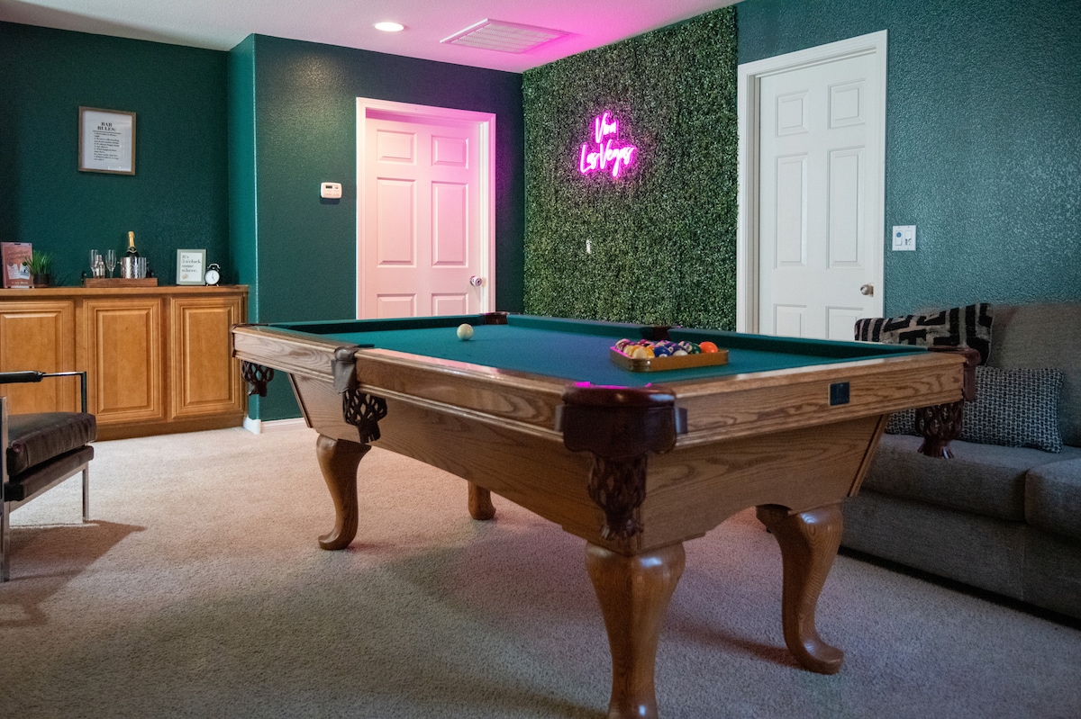 Этот дом был полностью отремонтирован от полов до потолка, до внешних развлечений и обстановки. Водопадная стойка на полностью укомплектованной кухне готова принять ваших друзей и семью. Пять 75-65-дюймовый телевизор в доме. Развлечения внутри и снаружи: игра в кольца, бильярдный стол и дротики внутри, игра в подкову и корнхол на улице. Это жилье готово помочь сделать поездку в Лас-Вегас незабываемой. Мы рады принять вас. Наслаждайтесь пребыванием!