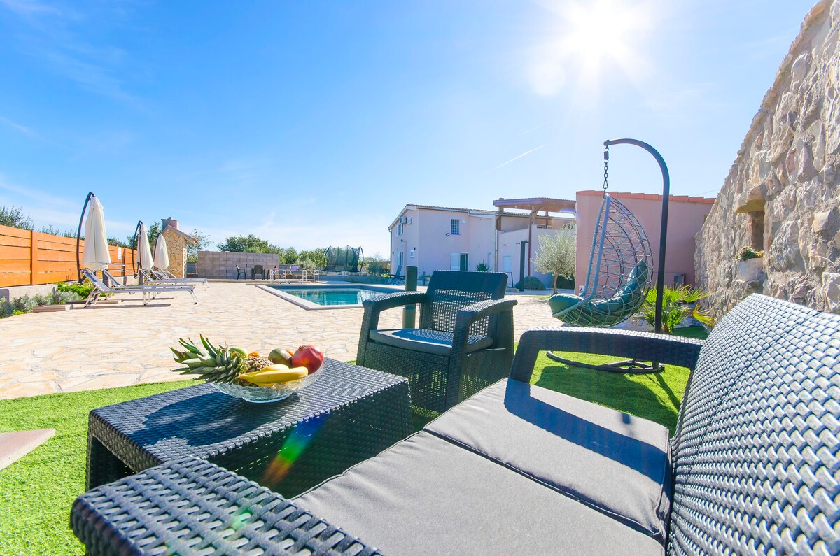 Внимание вся природа и спокойствие, а также активные любители отдыха!!! Красивый новый перестроенный дом с подогреваемым бассейном, барбекю на открытом воздухе и высокими стенами, чтобы обеспечить вашу конфиденциальность, всего в 15 км от национального парка Крка. Если вы любите спортивные проблемы с нашим прилавком, плавательный чемпион для дуэля... или просто сидите и расслабьтесь и массируйте свой день... Вы можете устроить хорошую вечеринку у бассейна с домашними животными... просто убедитесь, что вы курите, чтобы не делать этого в доме, пожалуйста.