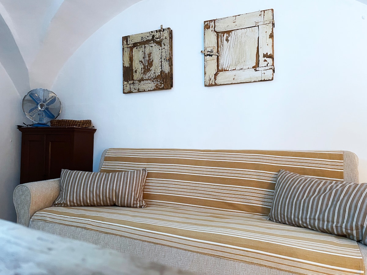 Это наше решение для отдыха с интимной и элегантной атмосферой. Просторная комната с видом на сельскую местность через большие окна. Вторая комната с бочковым сводом, камином, небольшой хорошо оборудованной кухней и ванной комнатой делают это романтическое место, погруженное в аутентичную апулийскую сельскую местность, идеальным для наших гостей. Зона на открытом воздухе для отдыха и беседка для самых солнечных дней.