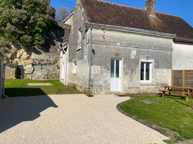 Нестандартная экскурсия по пещере 🌿 Необходимый ☀️ комфорт, дух природы, террасные сады и вид на Луару (4 км от Амбуаза) 🏡 Студия, высеченная в скале, с частным двором 🚻 Отдельный туалет с подогревом + холодильник и стиральная машина в прилегающем подвале (3 ступеньки). Пристройки к пещере 🌞 ~200 м² (туф, неотапливаемые, без спальных мест) — летняя гостиная и вставка (предлагается 1-й выход, после этого участие в лесозаготовках). 📅 Минимальный срок проживания: 2 ночи