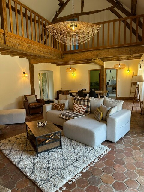 Амбар площадью 80 м², отремонтированный в 2022 году и оснащенный всеми удобствами, идеально подойдет для отдыха на выходных / семейного отдыха (1 двуспальная кровать 160 x 200 см, возможность размещения ребенка старше 2 лет на диване-кровати или в детской кроватке). Пара, которой нужны тишина и покой в сельской местности! Максимум 2 взрослых. Большой парк/бассейн/качели/батут/настольные игры, телевизор с Netflix, Amazon, Molotov. Все магазины находятся в нескольких милях. Вечеринки / Профессиональная фотосъемка / Церемонии / Проживание с животными запрещено. В целях страхования количество гостей должно соответствовать количеству, указанному в бронировании.