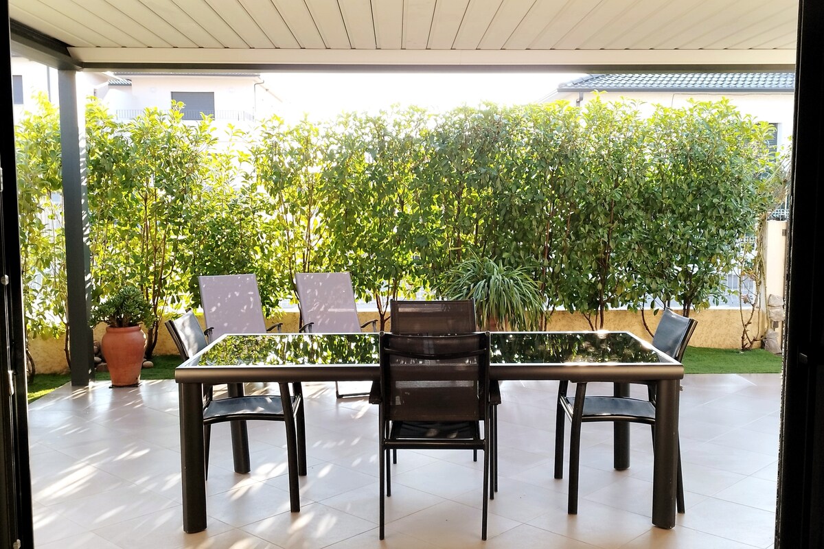 В кондоминиуме есть большой бассейн с шезлонгами и зонтиками (с мая по сентябрь) и 2 теннисных корта. Дом рассчитан на 6 человек, с частным полностью огороженным садом и террасой садовой мебели, барбекю, шезлонгами. Жилье обеспечивает прямой доступ на песчанный пляж в 20 метрах и рядом со многими услугами: корсиканским продуктовым магазином, пекарней, супермаркетом, табаком и т. д.