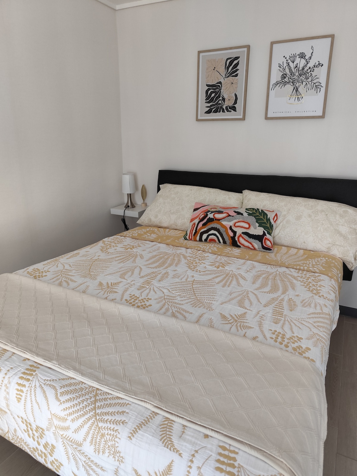 Просторная и изысканная 110 метров плюс терраса! Гостиная, столовая и полностью оборудованная встроенная кухня: соседний холодильник, электрическая духовка, микроволновая печь, микроволновая печь, керамическая кухня, керамическая плита, вытяжка, вытяжка, посудомоечная машина. стиральная / сушильная машины. Терраса оснащена встроенным газовым грилем. Интерьер просторный и очень комфортный. Декор скандинавский и непринужденный. В главной ванной комнате есть двойной душ и еще одна ванная комната с туалетом для посетителей. Есть подземная парковка и парковка для посетителей.