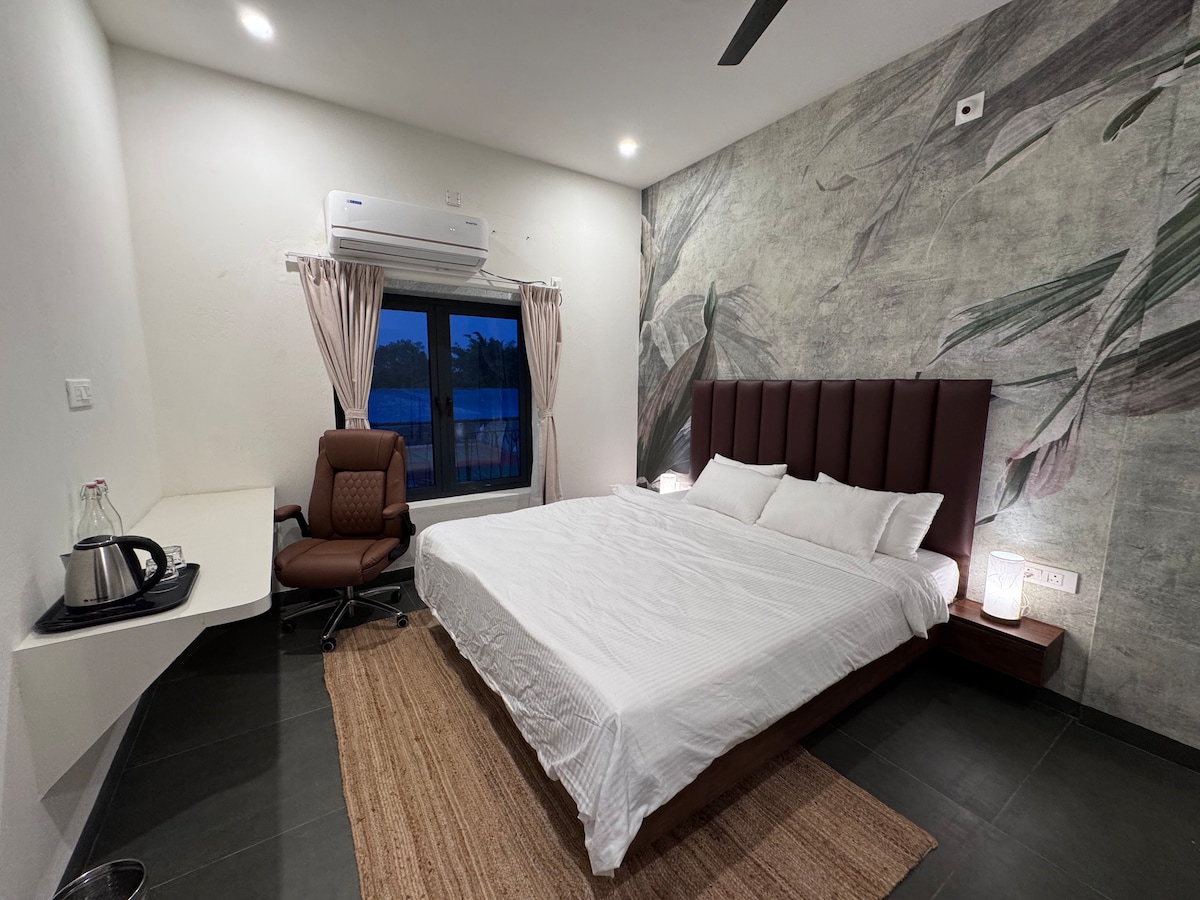 Experience serenity in this spacious 3BHK villa at Shubh Enclave, designed for families, founders, and creatives. Nestled beside lush greenery and a peaceful lake, ample sunlight and fresh air create a sanctuary for spaciousness, stillness and silence ✔ 3 king-size bedrooms w private attached washrooms ✔ Spacious living room with 55" Smart TV ✔ 2 airy balconies ✔ Fully equipped kitchen: microwave, stove, fridge, mixer utensils, Washing machine ✔ Daily cleaning available, cook on request