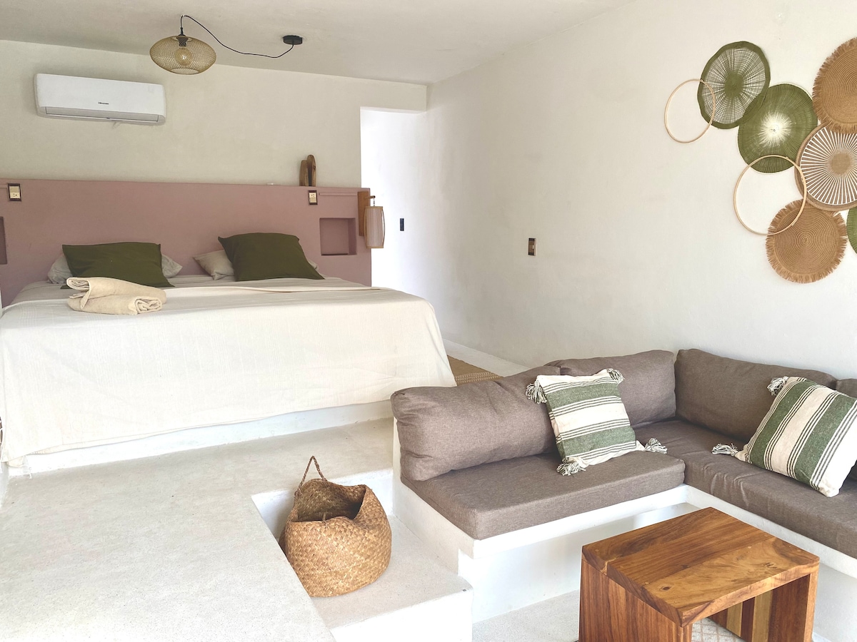 Наслаждайтесь отдельной комнатой с бассейном всего в одном квартале от Плайя-Сикатела. Идеально подходит для пар, ищущих романтический отдых, серферов, которые хотят быть рядом с волнами, и цифровых кочевников, которым нужно спокойствие и надежный Wi-Fi. Отдохните в бассейне, насладитесь солнцем и познакомьтесь с Пуэрто-Эскондидо.