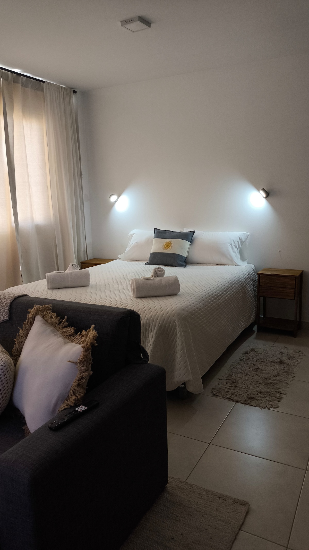 Красивая квартира на третьем этаже, расположенная в северной части города Пуэрто-Мадрин, с привилегированным видом на побережье Гольфо-Нуэво, всего в 5 кварталах от торгового центра города. В квартире одна полноценная спальня с гардеробной, столовая с двуспальной кроватью, кухня и собственный балкон на террасе. Современное здание с собственным гаражом, лифтом и камерами наблюдения.