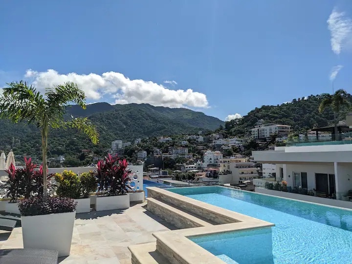 Потрясающий бассейн на крыше и джакузи в романтической зоне Пуэрто-Вальярта