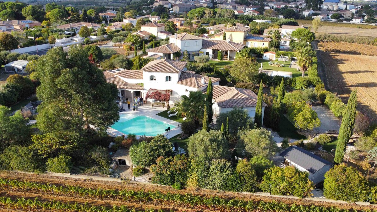 Жилье расположено в центре парка площадью несколько гектаров, окруженного вековыми соснами, где свободно гуляют великолепные павлины, а самые внимательные и наблюдательные также встретят белок. Наш дом обязательно соблазнит вас! Великолепный бассейн ждет вас для отдыха в самом сердце поместья. Расположен всего в нескольких километрах от пляжей и Кап-д'Агд в муниципалитете Бессан. Это место волшебное 😊 Дополнительно: деревянное шале на 4 человек 😉