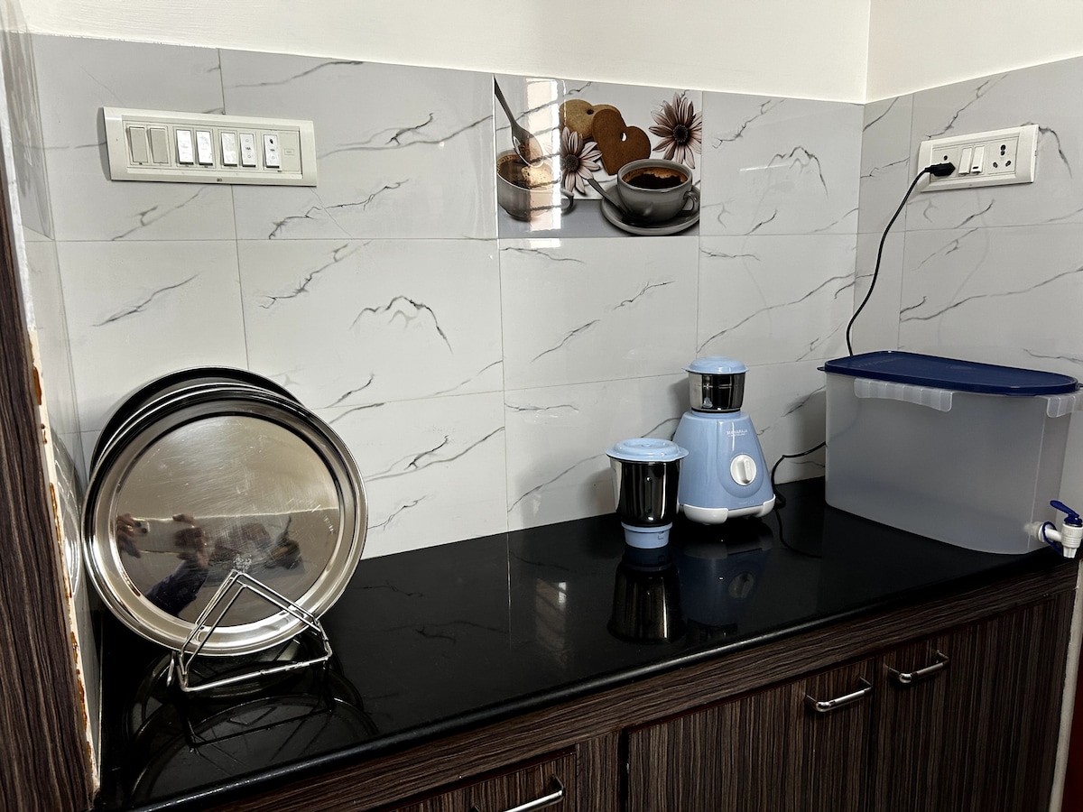 Добро пожаловать в Kripa Homes Saligramam. Совершенно новая квартира с 3 спальнями и кухней на 3-м этаже (есть лифт), есть проектор и ванна 3 спальни с ванными комнатами, оформленные в уникальном стиле, чтобы обеспечить хорошее пребывание. Кухня укомплектована всей необходимой посудой. Гейзер во всех ванных комнатах. ИБП для освещения и вентиляторов. 5 минут от студий AVM, Prasad Labs, Vijaya Forum Mall. 5–10 минут до больниц Kaveri Hospital, Sims Hospital, Suriya Hospital. 1 км до станции метро. Крытая парковка для автомобилей. Предпочтительно для семей и длительного проживания.