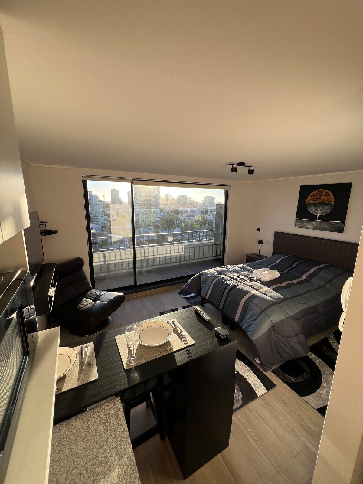 Современная студия с панорамным видом, полностью оборудованная
