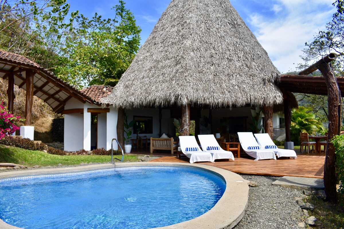 New, luxurious, hillside bungalow with PRIVATE infinity pool and stunning ocean-view; off the beaten path •1 Queen suite + 1 Twin suite, each with private ensuite, A/C •Full kitchen & seamless indoor–outdoor living •Close to beaches, wildlife, and adventure tours •Travel Times: Approximately 2 ½ hours from Liberia Airport (LIR) and about 5 hours from San José Airport (SJO) by car •4WD SUV required for the scenic rural drive