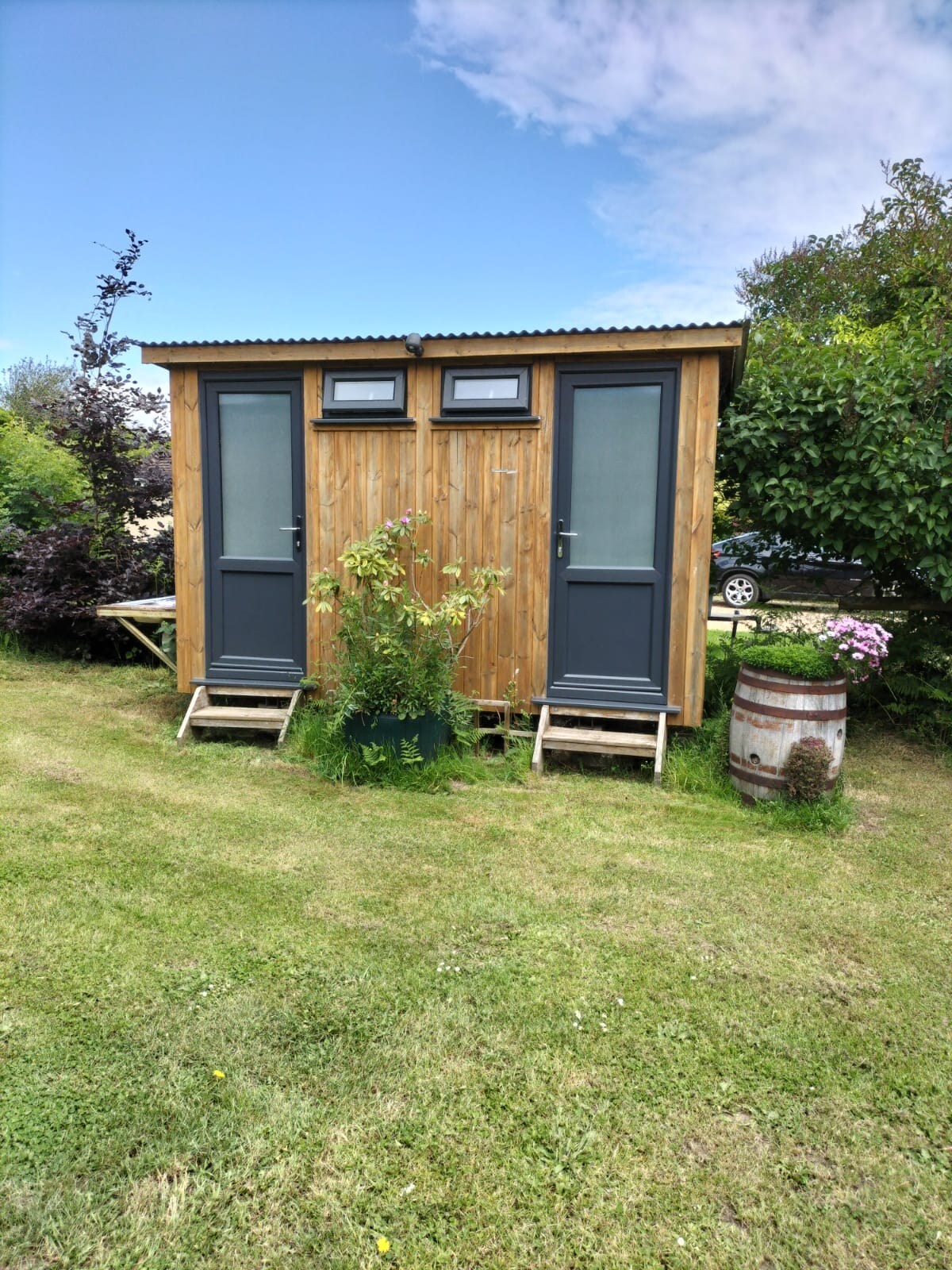 Студия и пастуший фургон в красивом саду