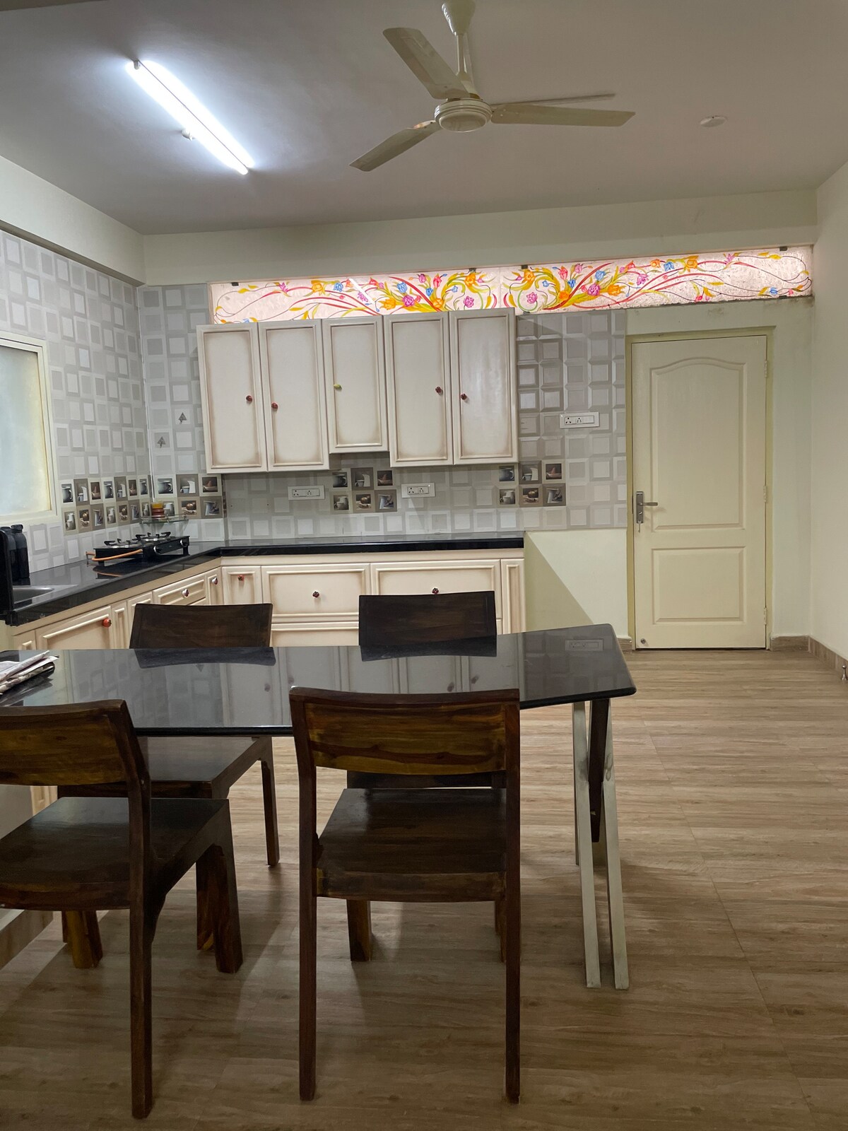 Новая квартира с 2 спальнями, полностью меблированная, со всеми основными удобствами, такими как 2 двуспальные кровати размера Queen size в двух комнатах с примыкающими ванными комнатами, 1 диван-кровать в зале, 3 кондиционера, стиральная машина, диван, обеденный стол, холодильник, чайник и микроволновая печь, смарт-телевизор, газовое подключение, вода Kent, бойлер, шкафчик, Wi-Fi (платно) и т. д. Есть прекрасный бассейн и хорошо оборудованный тренажерный зал. (Примечание. Недоступно для неженатых пар)