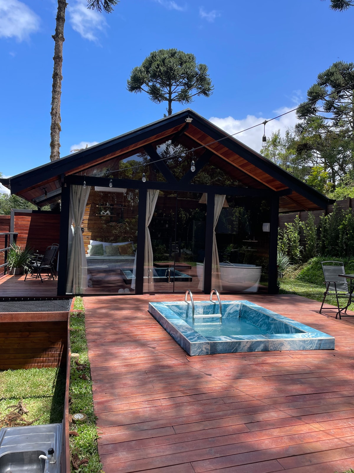 Uma cabana simples e rústica, mas cheia de conforto e charme — o refúgio perfeito para quem busca tranquilidade e romance! Você será rodeado por muito verde, pássaros e uma experiência única com animais da fazendinha. Para relaxar, desfrute de uma hidromassagem privativa e, à noite, reúna-se ao redor da fogueira para viver a experiência de um luau.