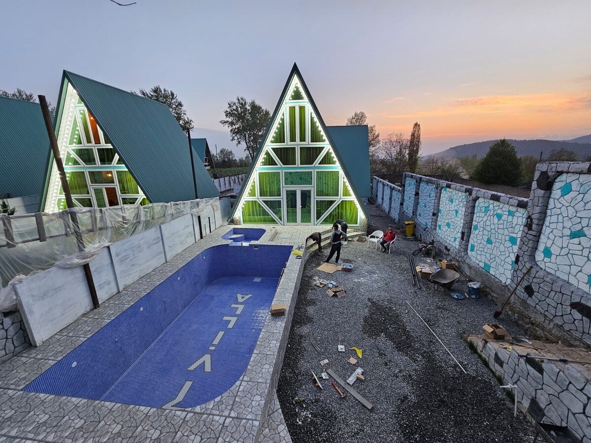 Этот дом с A-образной крышей и великолепным видом на гору Шахдаг — идеальное место для спокойного и незабываемого отдыха на природе. Отель расположен всего в нескольких минутах от горнолыжных курортов и гостиничного комплекса Шахдаг. Снежный горный воздух, тихая обстановка и панорамный вид дарят гостям настоящий горный отдых. Уютный интерьер, теплая атмосфера и полностью оборудованное жилье идеально подходят как для семей, так и для пар. Здесь отдых дарит разное удовольствие каждый сезон. ❄️🏔️