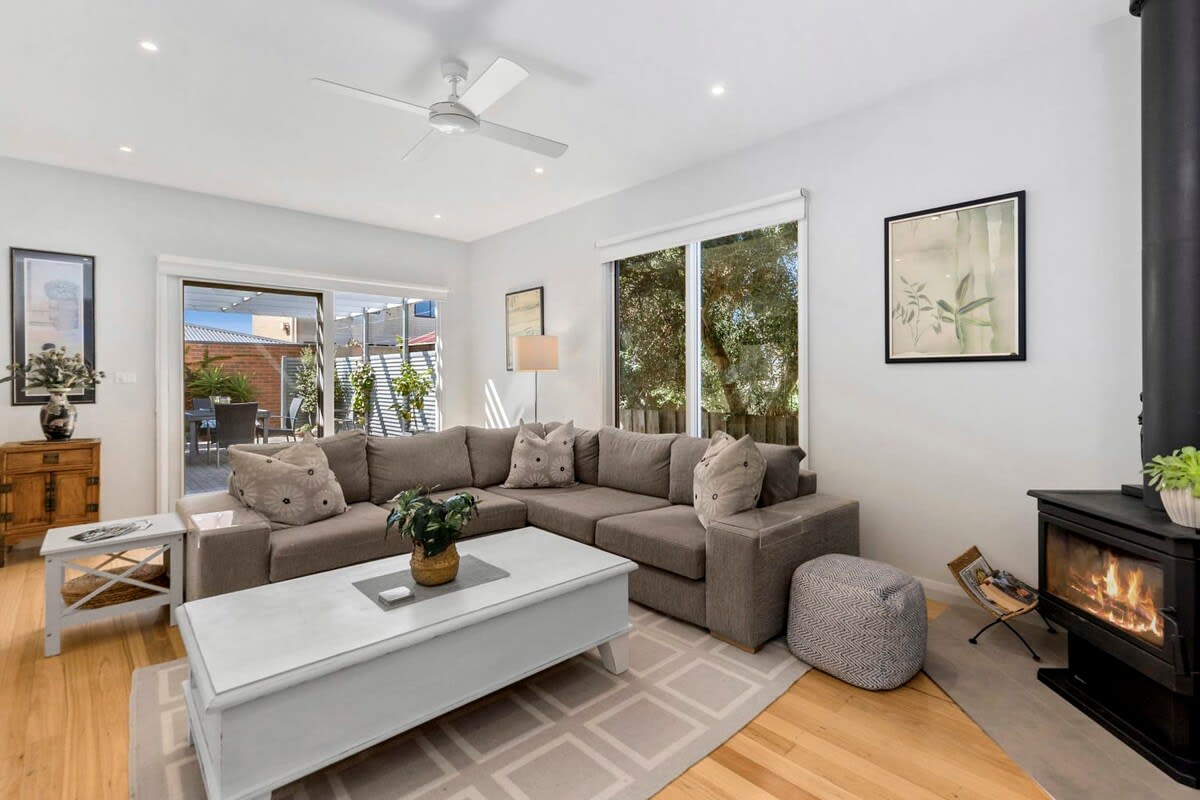 Welcome to Wirilda Retreat, an idyllic beach house located in the charming coastal town of Point Lonsdale on the Bellarine Peninsula. This stylish, spacious 3-4 bedroom, 2.5 bathroom retreat is a perfect getaway for families and friends seeking relaxation and adventure. Enjoy seamless indoor-outdoor living transitions from the stunning pool and lounge area, into living room with cosy indoor fireplace and alfresco entertaining area, all surrounded by beautifully curated, landscaped garden.