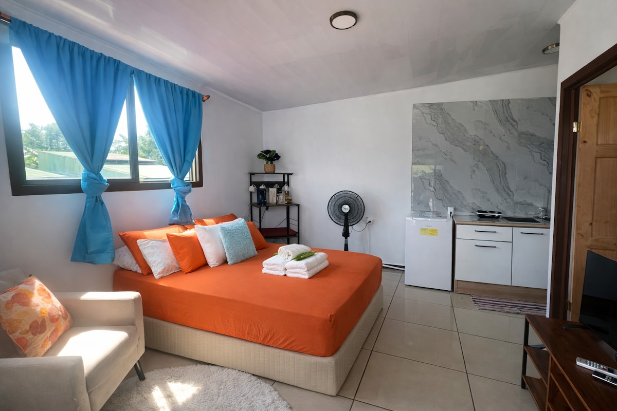 Pequeño estudio con baño privado & A/C . ❤️ 200 metros de la ciudad donde encontrarás : Restaurantes Bares Supermercados Farmacias entre otros. Estamos a 6 km del parque Manuel Antonio 1.5 km de playa Nahomi 200 metros de la estación de autobuses de: San José , corcovado , Jaco , dominical , Uvita y puntarenas