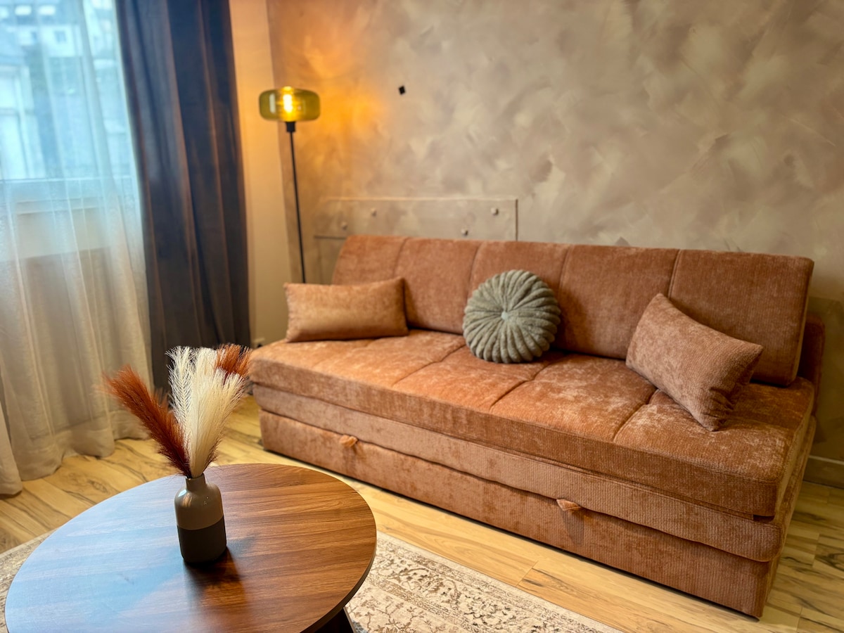 Добро пожаловать в Кемперле! Наслаждайтесь стильной и хорошо оборудованной квартирой-студией, идеально расположенной в центре города, со всем необходимым для комфортного и беззаботного проживания. В вашем распоряжении очень удобная кровать, оборудованная кухня, обеденный стол, душевая комната, а также отдельный туалет. Предоставляются 🛏️ постельное белье, полотенца и полотенце, так что вы можете путешествовать на легке.