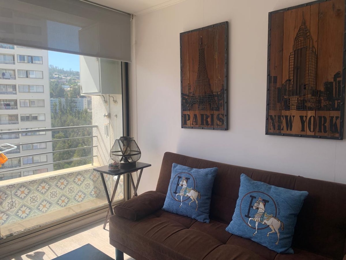 Hermoso departamento nuevo, un dormitorio con cama matrimonial y living con futon, Ubicado en sector Costa de Montemar cerca de playa Los Lilenes para dar paseos relajantes, dunas de Concón, supermercado Jumbo, líder, Club de Yates Higuerillas y polo gastronómico de la zona. Moderno edificio con piscina soleada, piscina temperada, gimnasio, sauna, quincho y juegos infantiles.