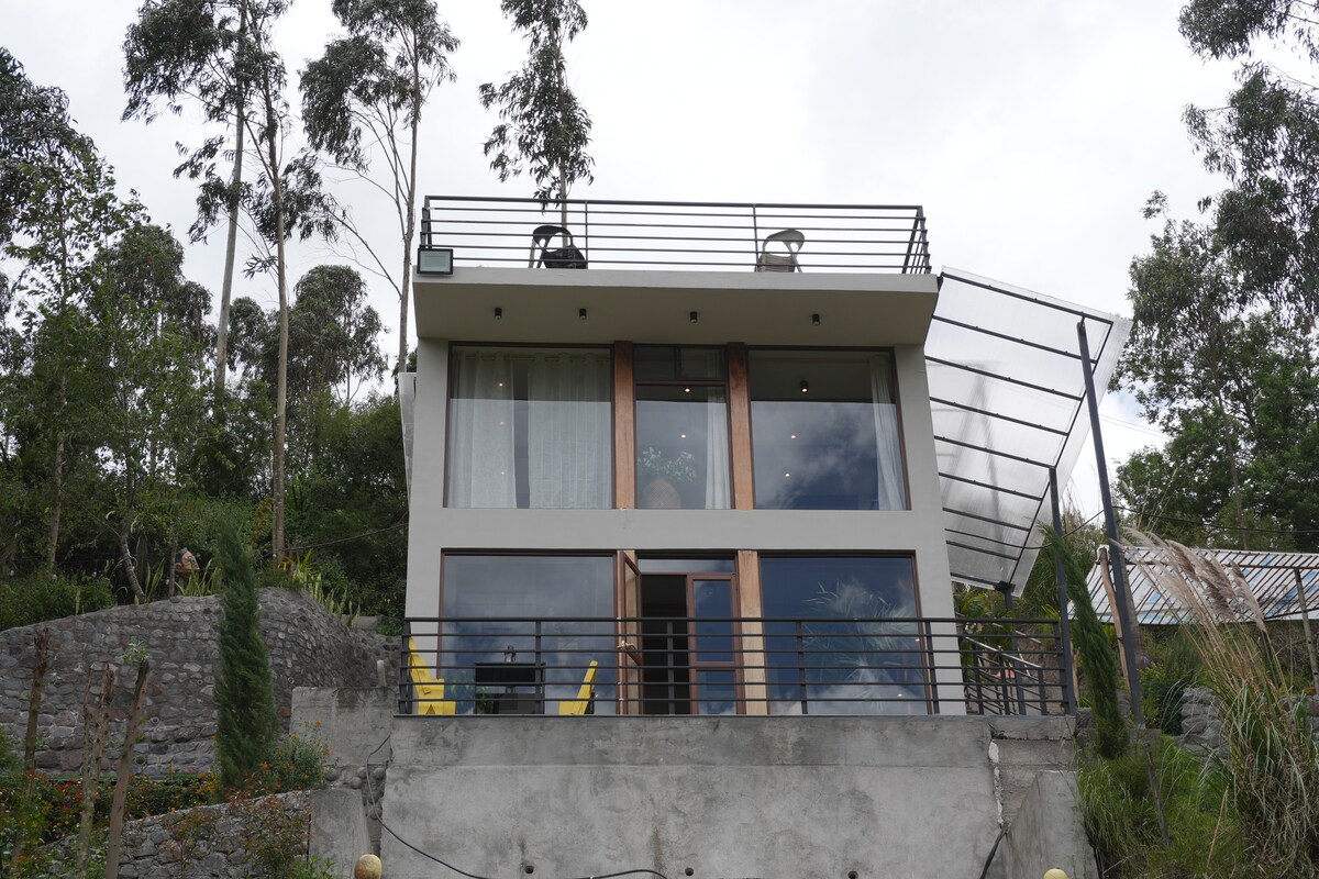 Этот дом с панорамным видом на озеро Сан-Пабло сочетает в себе экологичный дизайн и живую природу. В окружении фруктовых деревьев и сельскохозяйственных культур вы можете устроить барбекю или исследовать парк Мегазауриус, лагуну, вулкан Имбабура и Отавало. Этот дом, спроектированный известным архитектором, идеально подходит для отдыха, воссоединения или удаленной работы в уникальной обстановке мира и природной красоты.