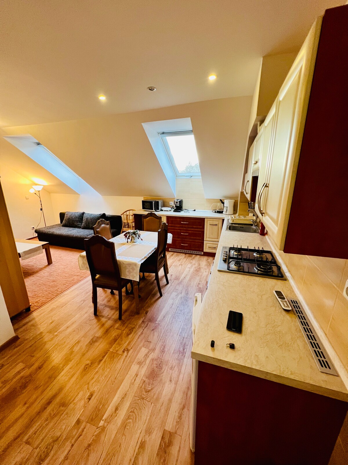 Замечательная квартира, вы найдете все необходимое во время вашего пребывания для деловых поездок или путешествий с семьей. Удобная и функциональная квартира с расслабляющим видом на город станет для вас особым удовольствием. Рядом игровые площадки, магазины, пекарня, места, где можно вкусно поесть, парикмахерская, косметолог, тренажерный зал, массаж.